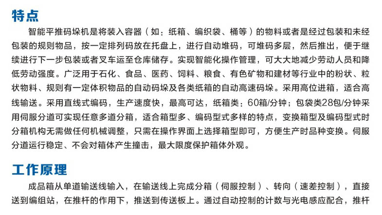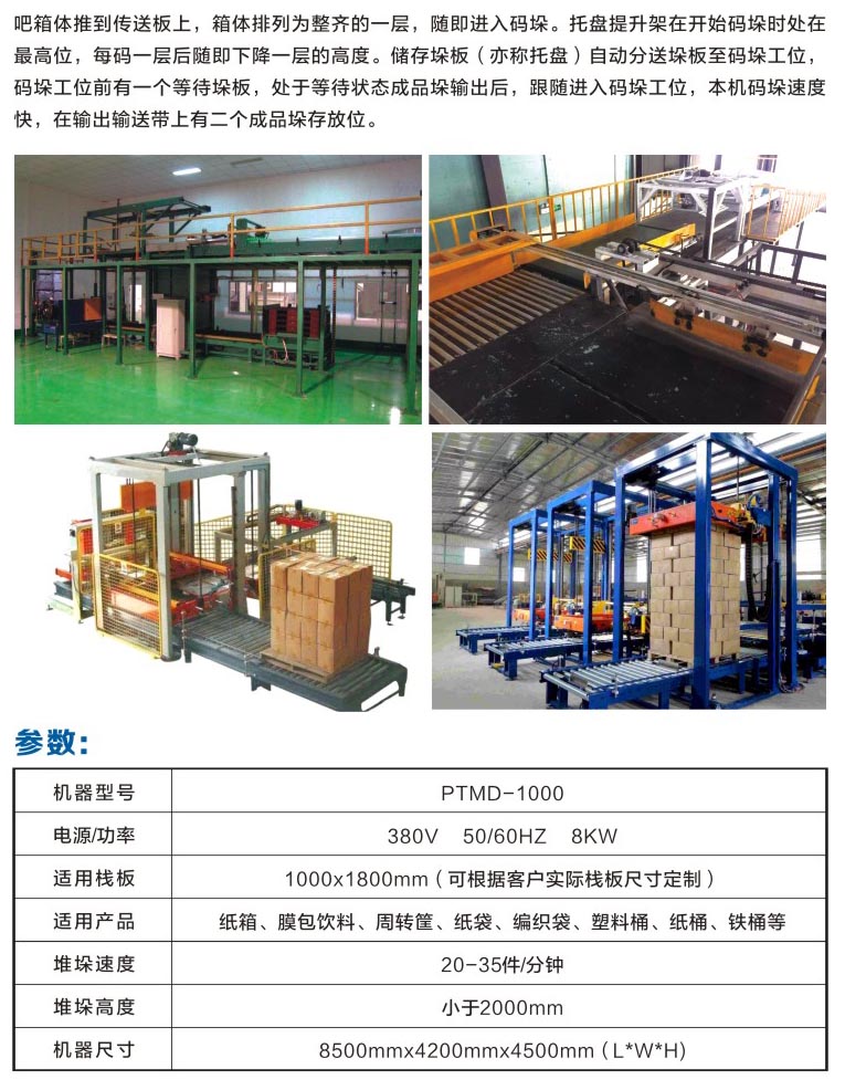 竭诚为新老客户服务,提供码垛机设备技术,生产线设计,设备安装调试等服务。